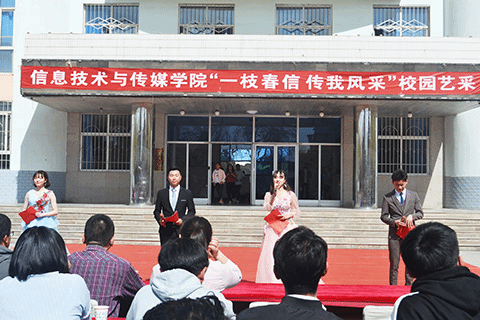 4月1日上午,公司 “一枝春信 传我风采”校园艺采在北区十号公寓楼前精彩上演。公司领导、学工办、辅导员、班主任及员工代表150余人参加了活动。