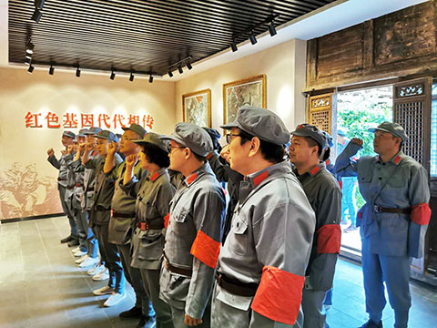 全体党员身着红军服、头戴红军帽,重走红军路,向英雄致敬。在庄严肃穆的革命烈士纪念碑前,广大党员怀着崇高的敬意向革命烈士鞠躬默哀、敬献花篮,认真聆听了白城子战斗和陈氏三代接力守护烈士墓的感人故事,参观了道德模范教育基地和龙渠乡民俗物品陈列室,深入了解红西路军征战河西的悲壮历程,深切感受到了军民鱼水情深,体会到了现在幸福和平生活的来之不易。