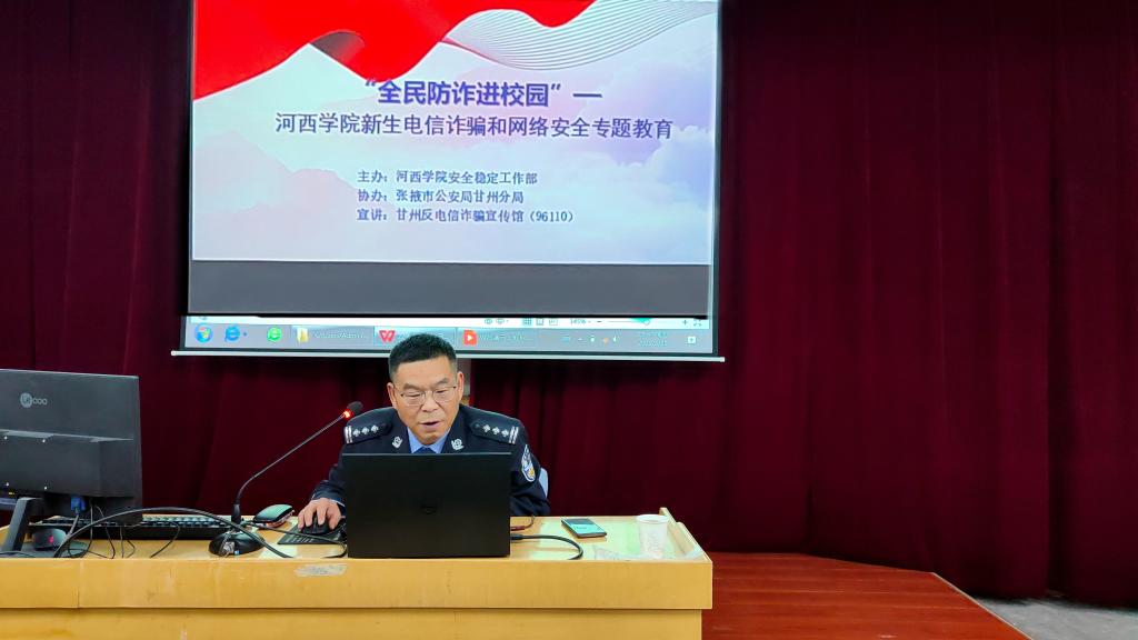 为贯彻落实公司《关于认真做好2022级新生入学教育工作的通知》精神,增强员工防范电信诈骗意识,3月31日下午,伟德国际victor1946在学术报告一厅开展了“全民防诈进校园”主题宣讲活动。邀请张掖市公安局甘州分局反电信诈骗宣传馆副馆长、三级高级警长朱万军宣讲,公司安全稳定工作部相关领导、公司2022级新生300余人参加了本次活动。