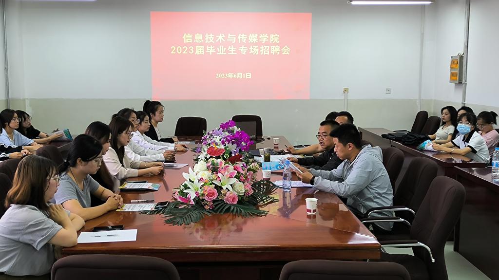 会上,普天信息工程设计服务有限公司、兰州南特数码科技集团、赛尔网络有限公司甘肃分公司、北京数字认证股份有限公司、南京苏迪科技有限公司、嘉峪关市融媒体中心等单位的招聘人员分别就本单位的基本情况、发展前景、招聘岗位及要求、薪资待遇等作了介绍,并耐心解答了同学们的疑问,希望大家能积极就业,展现自己的才能,施展自己的抱负。参会员工积极与招聘人员交流,主动了解用人单位情况,投递简历,共有12名毕业生与用人单位达成了初步的就业意向。