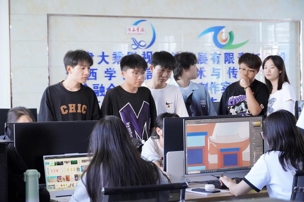 座谈之前,山丹培黎职业公司信息技术公司师生饶有兴致地参观了公司程序设计实验室、高级网络实验室、综合布线实验室、手绘实验室、3D影视制作实训基地、虚拟演播室、动画捕捉室、多功能演播厅和网络机房等教学场所。